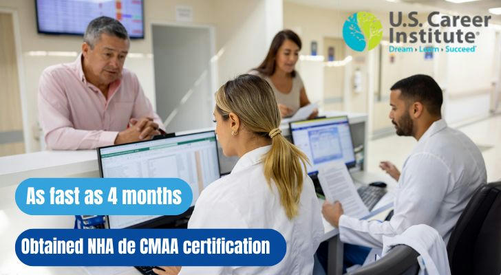 This Medical Administrative Assistant (CMAA) certification program from U.S. Career Institute lets you complete your training in as Fast as 4 Months, fully online β and prepares you to earn the NHA Certified Medical Administrative Assistant (CMAA) credential.